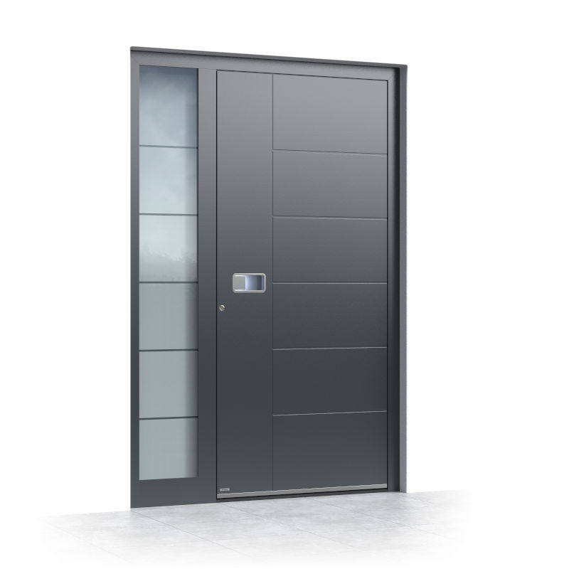 E qualcuno semplicemente non vuole avere un ingresso delle dimensioni usuali. I portoncini in alluminio possono essere realizzati con un’altezza senza precedenti di 300 cm e una larghezza di 280 cm con elementi laterali che danno l’impressione di una grandezza mozzafiato.